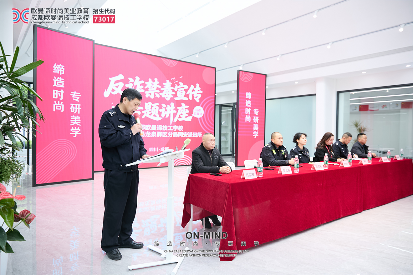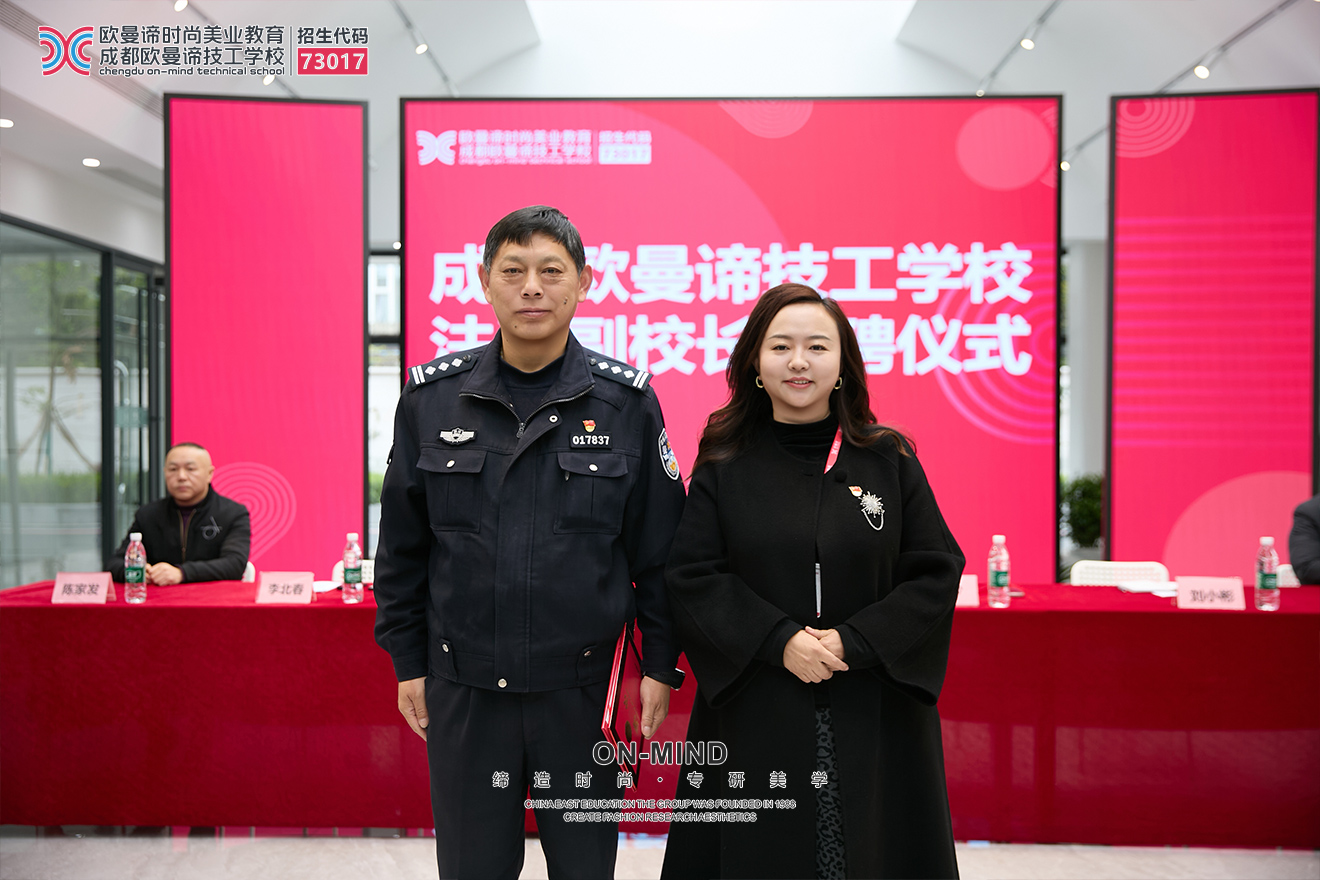 此次还特别举行了成都欧曼谛技工学校法治副校长受聘仪式,正式聘请同安派出所警官李北春为学校法治副校长。